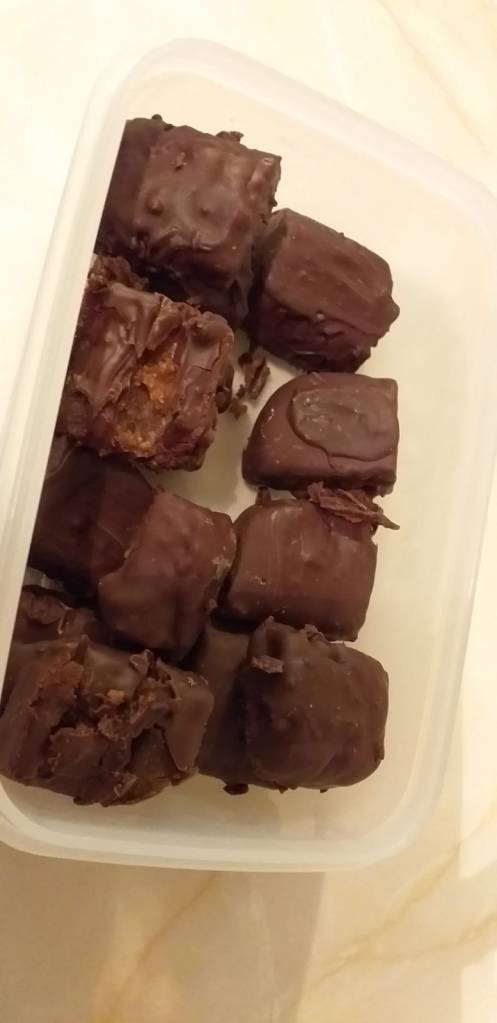 Something else which crossed my mind, but have not tried. A facemask is the perfect place to insert for instance a veggie pie/pasty (or food of your choice) so that it can be munched on while out and about. Think of this as a human version of a horse’s nose bag. Could this idea be the one that makes me squillions of quid’s?